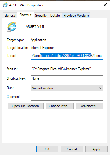 4. Go to Target and paste the text below at the end after "C:\Program Files (x86)\Internet Explorer\iexplore.exe"