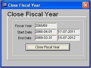 3. Close Fiscal Year – This Menu displays Close Fiscal Year form.