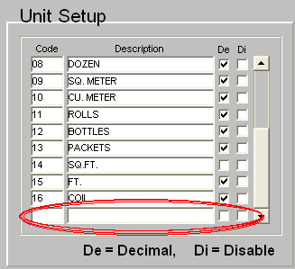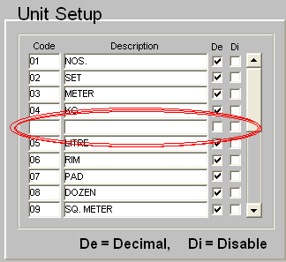 3 If the Unit of Measurement contains Decimal place then click on De.
