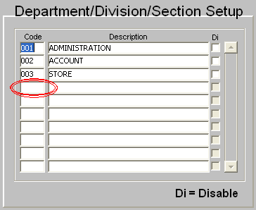 8. Select Department in the "Departemnt Code" field by pressing "Ctrl+L" or double clicking on "Department Code" Field.