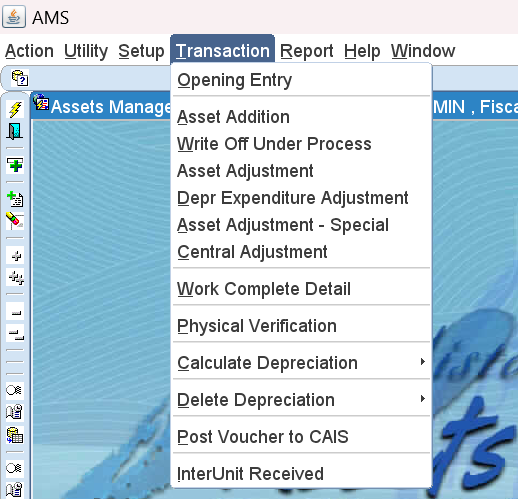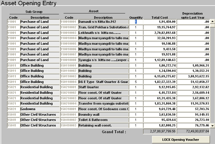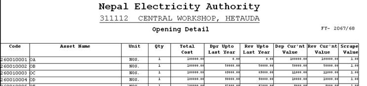 ii. Asset Opening Detail: When this menu is selected the following dialog box will appear on the screen.