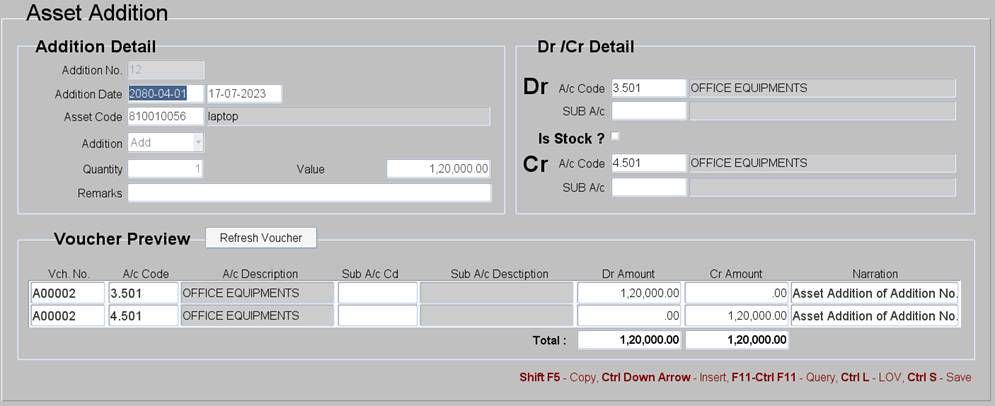 - Asset Group: Select Asset Group code by pressing "Ctrl+L" key or double click.