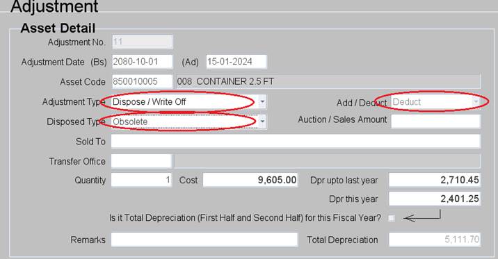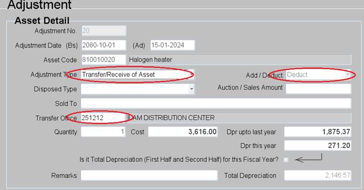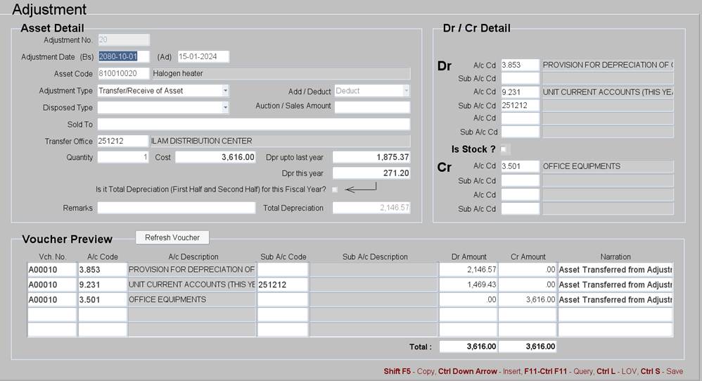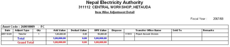 Asset Adjustment – Adjustment Detail (Item Wise)