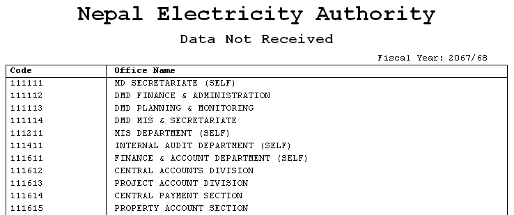 II. Data Not Sending Offices: When this menu is select the following dialog box will appear on the screen.