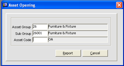 i. Asset Opening Group Wise: When this menu is selected the following dialog box will appear on the screen.
