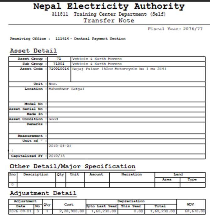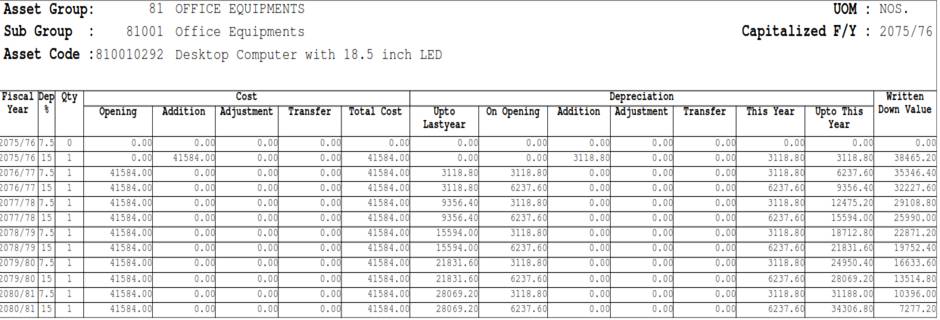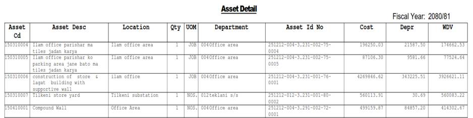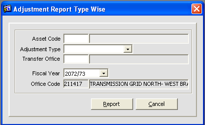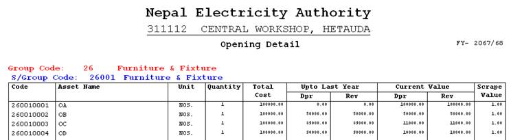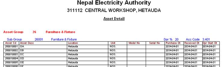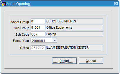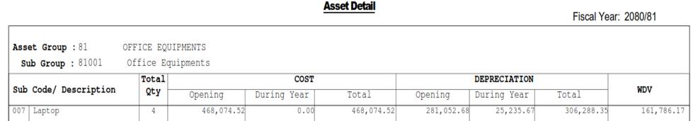 Note: If Asset Group, Sub Group and Asset Code is not selected, then whole report will be displayed.