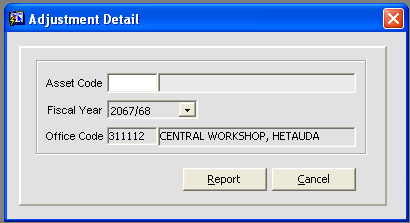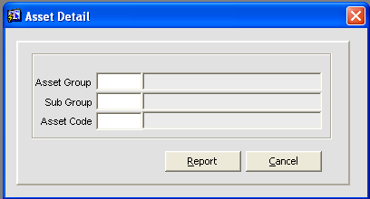 iv. Asset Detail Report: When this menu is selected the following dialog box will appear on the screen.